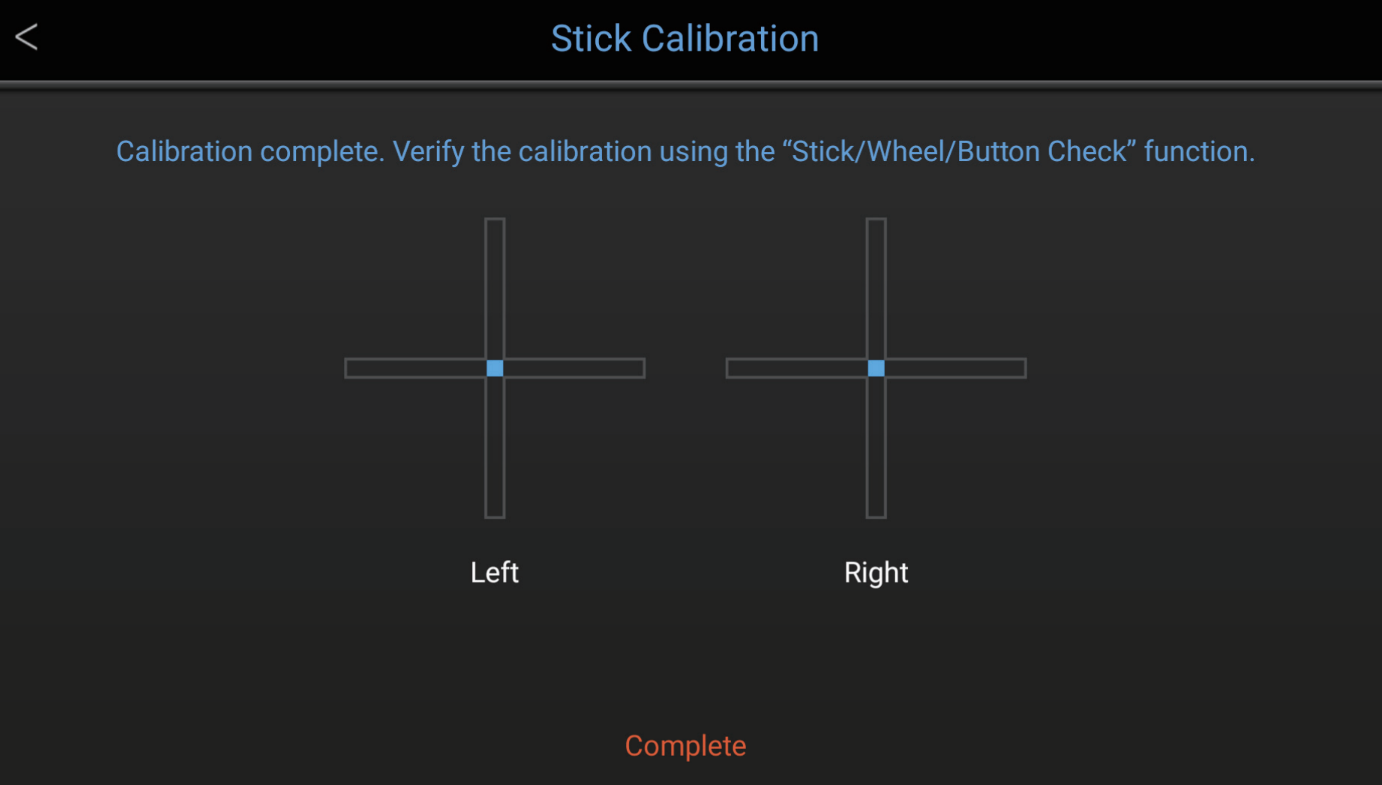 Follow the on-screen instructions to complete stick calibration.&#x20;When finished, tap **<** in the top left corner to return to the settings menu.